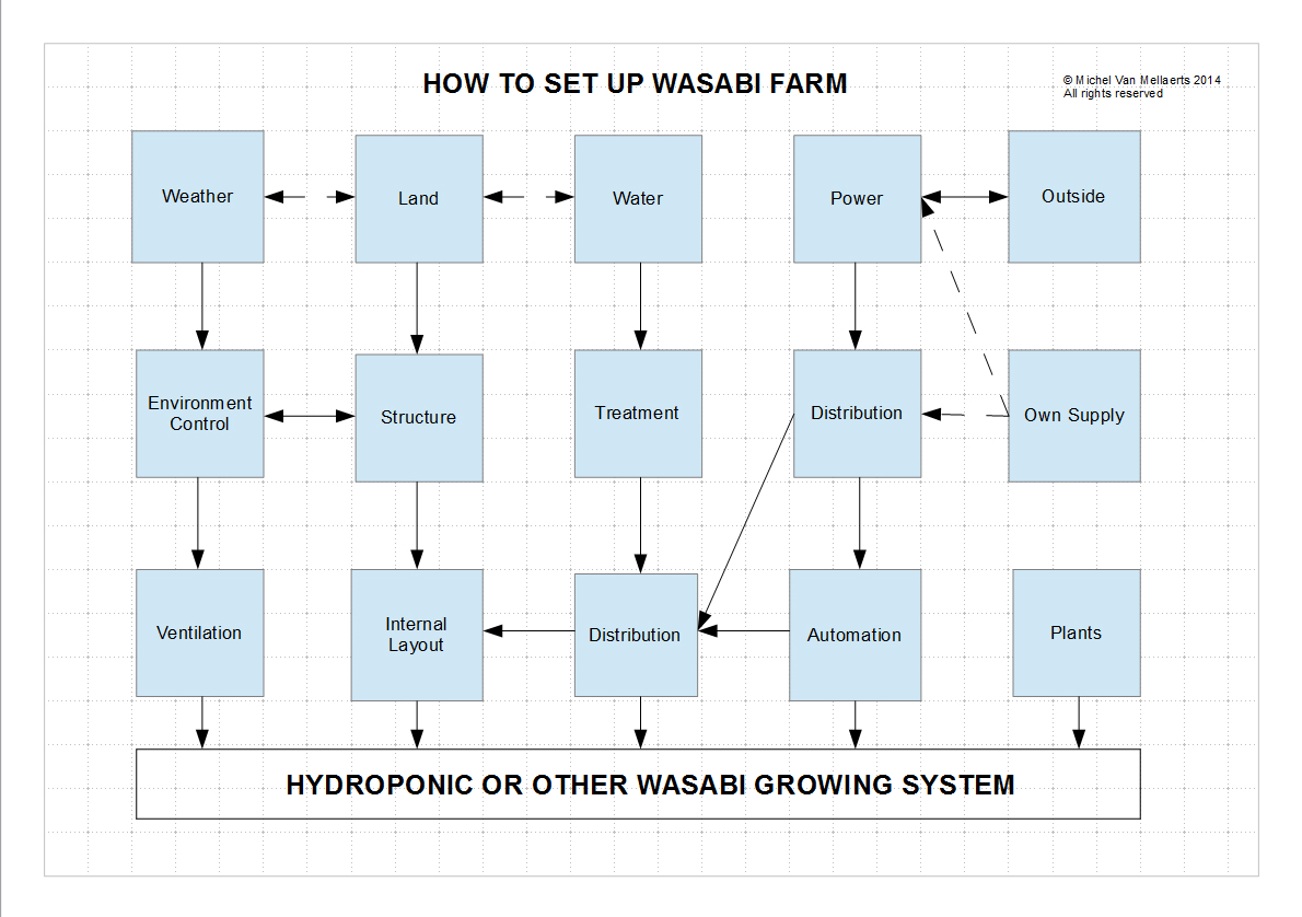 The diagram to the right indicates the areas that need to be sorted out before you can even think about how to set up your Wasabi Farm.
